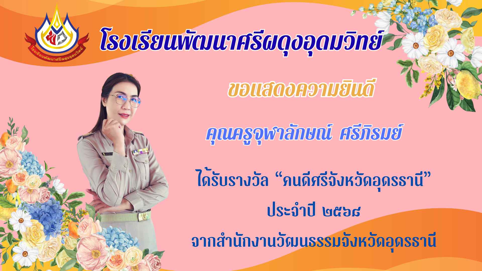 ขอแสดงความยินดี คุณครูจุฬาลักษณ์ ศรีภิรมย์ ได้รับรางวัล “คนดีศรีจังหวัดอุดรธานี” ประจำปี ๒๕๖๘