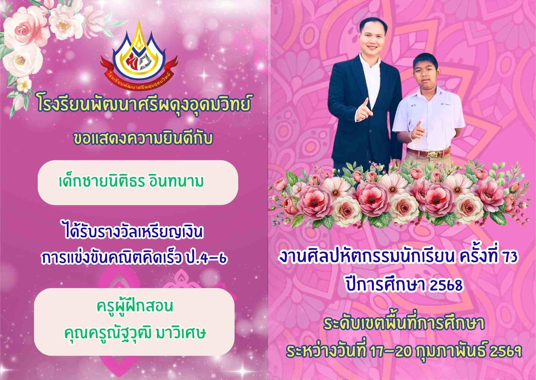รางวัลเหรียญเงิน การแข่งขันคณิตคิดเร็ว ป.4-6 งานศิลปหัตกรรมนักเรียน ครั้งที่ 73 ระดับเขตพื้นที่การศึกษา
