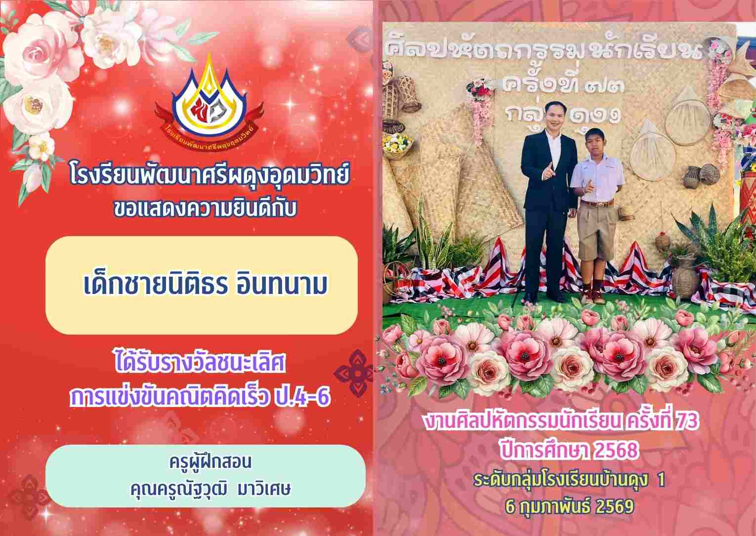 รางวัลชนะเลิศ การแข่งขันคณิตคิดเร็ว ป.4-6 งานศิลปหัตกรรมนักเรียน ครั้งที่ 73 ปีการศึกษา 2568