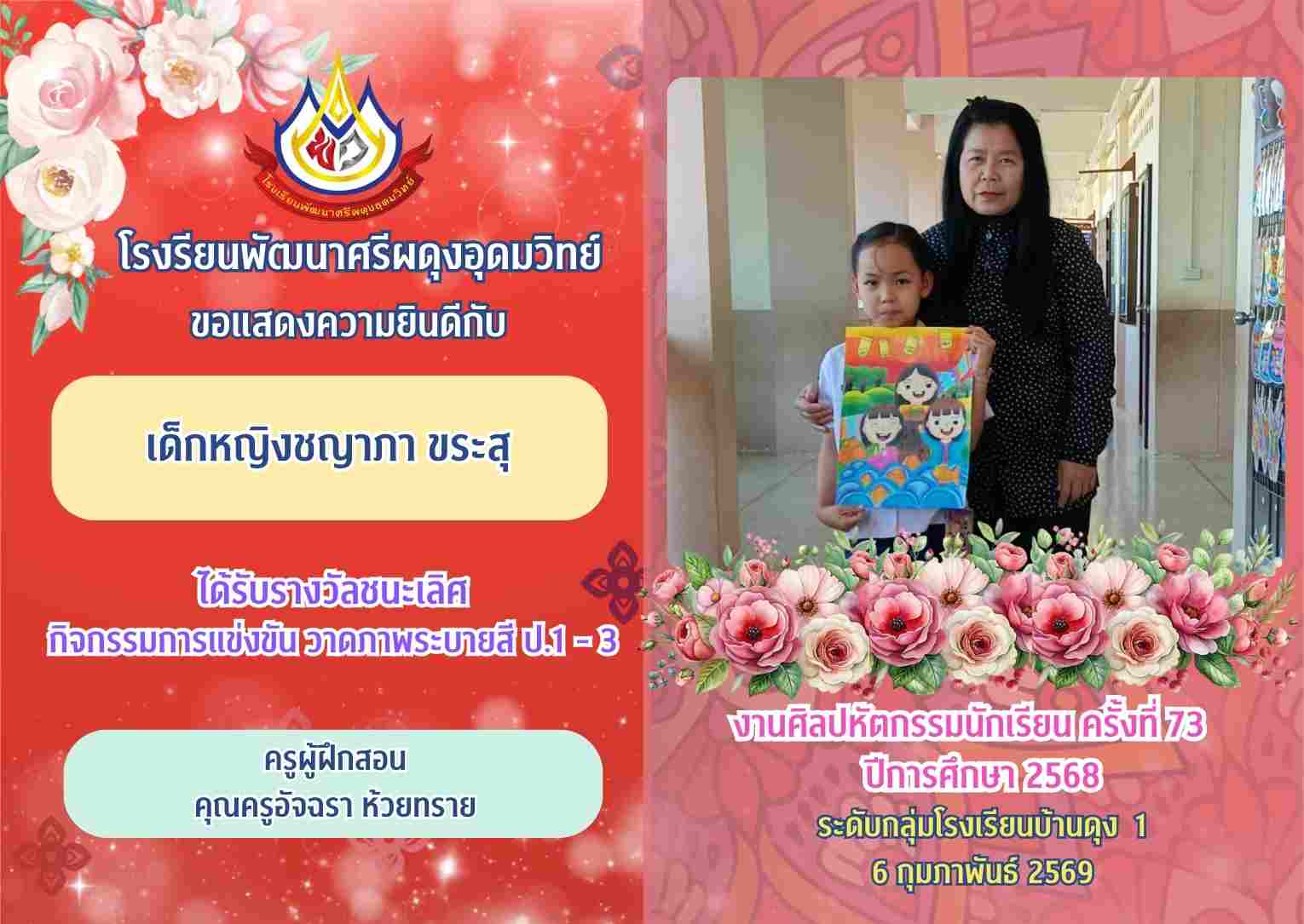 รางวัลชนะเลิศ กิจกรรมการแข่งขัน วาดภาพระบายสี ป.1 - 3 งานศิลปหัตกรรมนักเรียน ครั้งที่ 73 ปีการศึกษา 2568