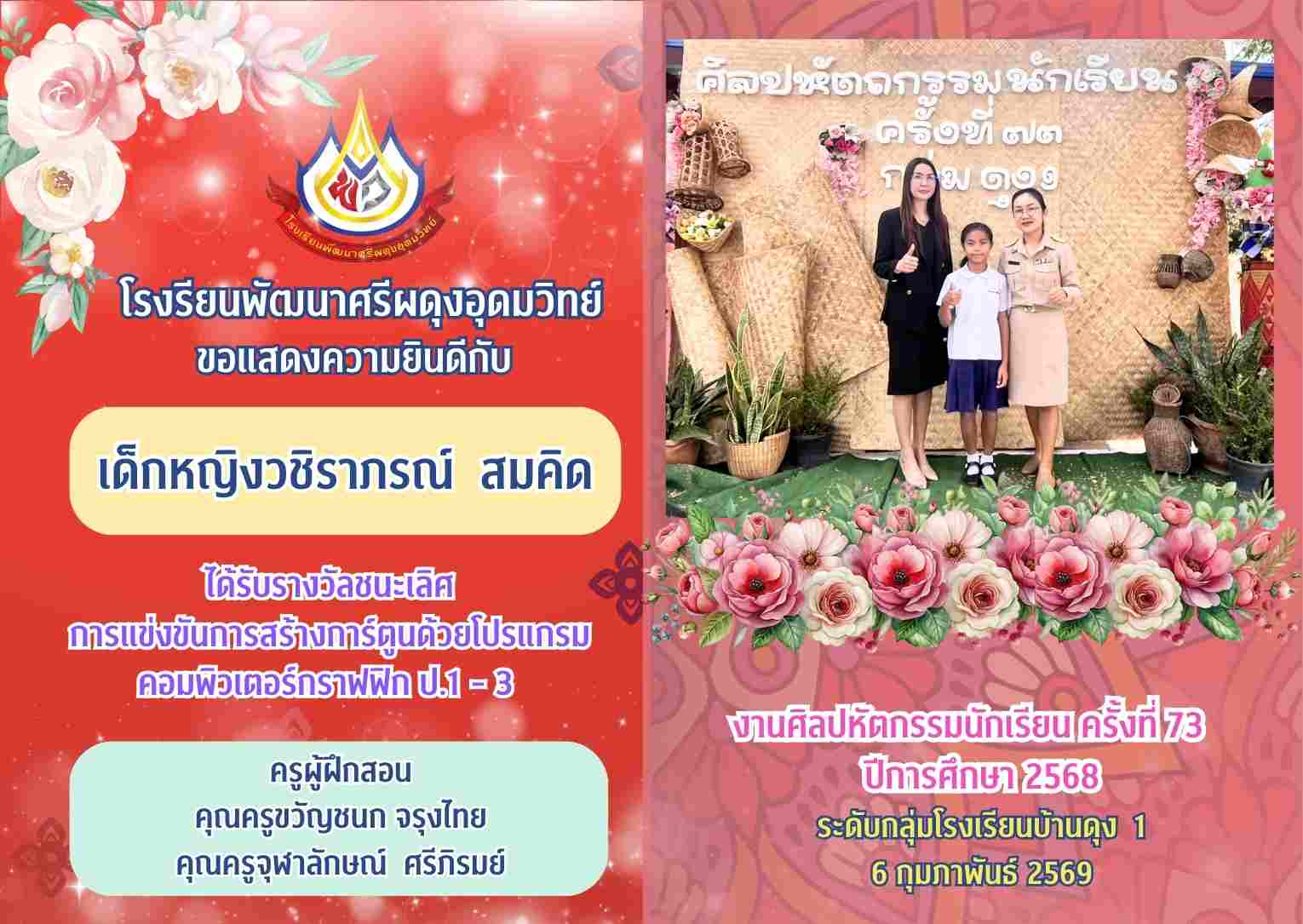 รางวัลชนะเลิศ การแข่งขันการสร้างการ์ตูนด้วยโปรแกรมคอมพิวเตอร์กราฟฟิก ป.1 - 3 งานศิลปหัตกรรมนักเรียน ครั้งที่ 73 ปีการศึกษา 2568